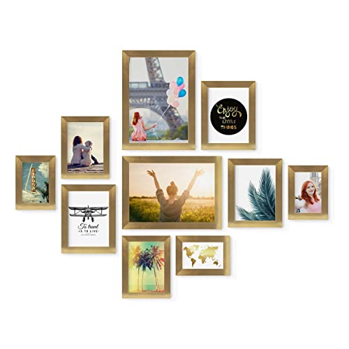PHOTOLINI Cadre photo bois MDF doré, cadre large bord, lot d...