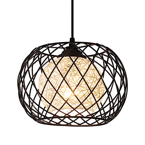 WOWEWA Lampe à Suspension Rétro en Métal Noir Cage E27 Suspe...