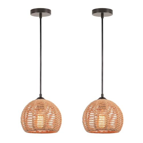 LIGKIN Lot de 2 Suspension Luminaire Rotin Vintage Boho E27...