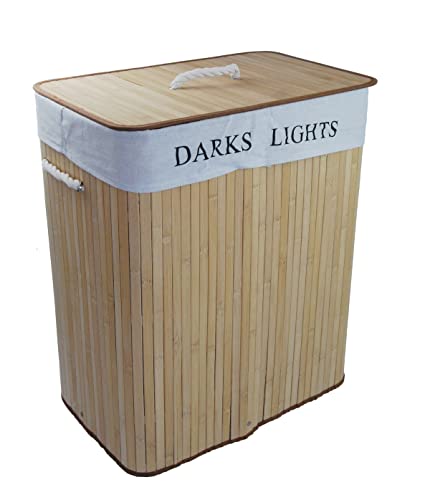Panier à linge pliable en bambou beige avec 2 compartiments...