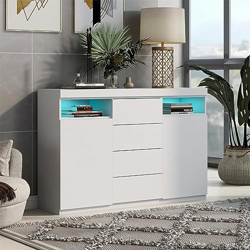 LED Commode Sweiko Multifonctionnel 139cm Blanc Bois