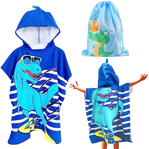FGen Poncho Bain Capuche Enfant Microfibre Dinosaure Bleu Ma...