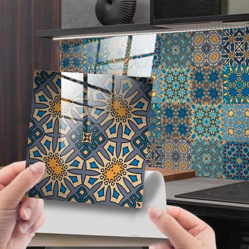 Stickers Carrelage Motif Rétro Bleu Credence Autocollants Ca...