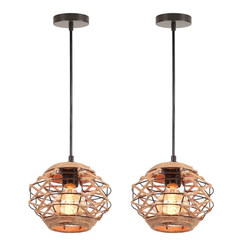 Lot de 2 Suspension Industrielle Vintage Lustre E27 Rotin