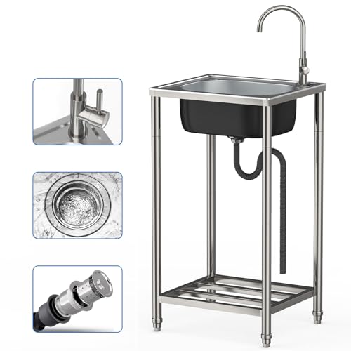 Autoportant Inox Évier Extérieur, Évier Portable avec Suppor...