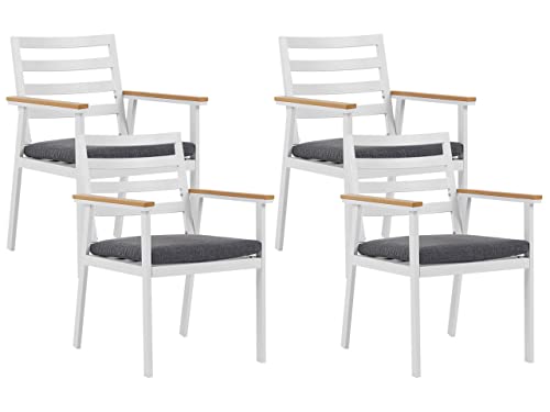 Chaises Jardin Aluminium Blanc 4 Personnes Accoudoirs Bois G...