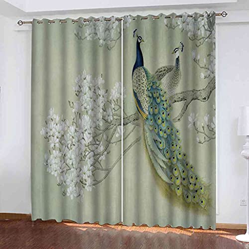 Rideaux Imprimés Paon Floral Thermiques Isolants Oeillets Gr...