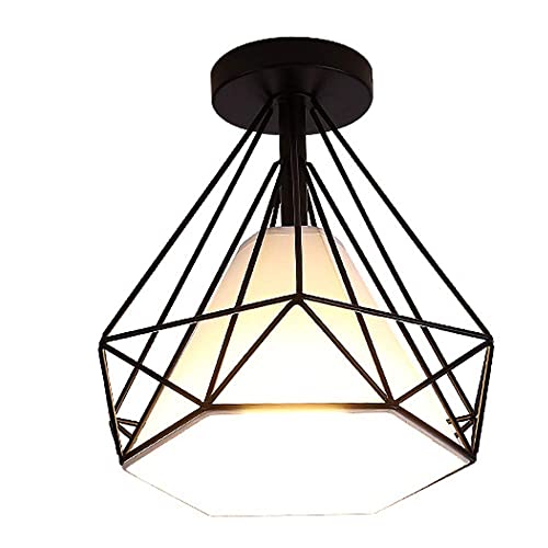 Plafonnier rétro cage forme diamant 25cm industriel métal fe...