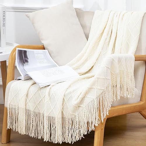 Plaid Canape Tricot Ferme Pompons Canapé Blanc