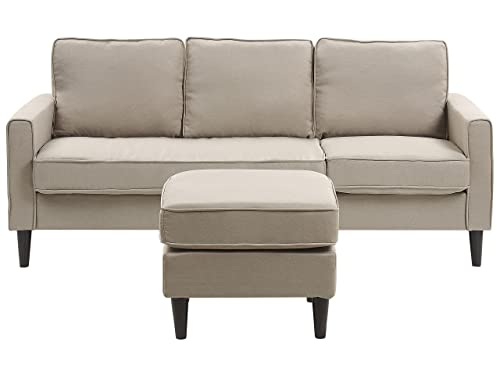 Canapé Fixe 3 Places en Tissu Beige avec Pouf Ottoman Confor...
