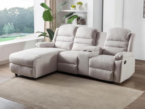 Canapé d''angle gauche relax manuel en tissu beige, composé...