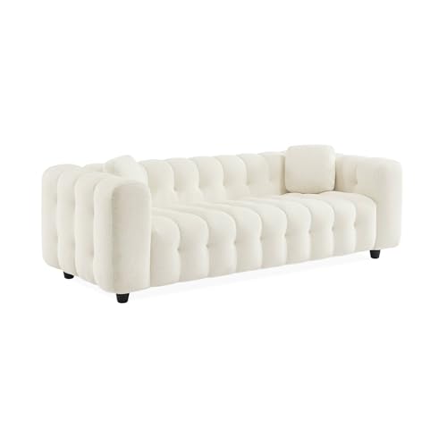 sweeek - Canapé 3 Places en Bouclette texturée capitonné Bla...