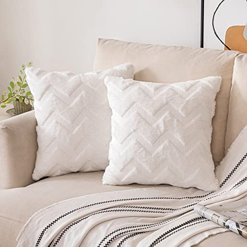 Madizz Lot de 2 Housses de Coussin en Peluche en Fausse Four...