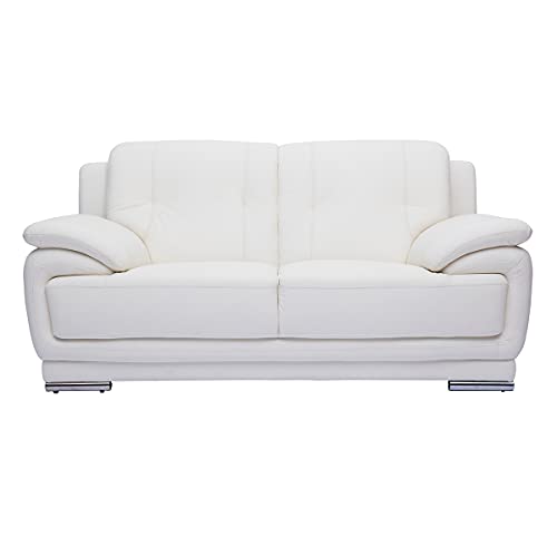 Miliboo Canapé Design 2 Places en Cuir Blanc et Acier chromé...