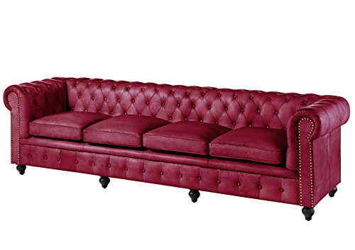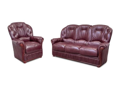 MASSIVMOEBEL24.DE Canapé 4 Places en Cuir véritable Bordeaux...