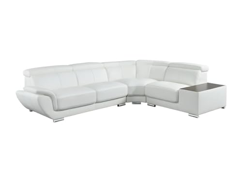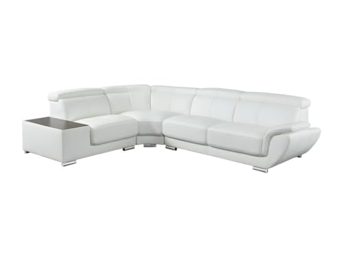 Vente-unique - Canapé d''angle en Cuir NAHIA - Blanc - Angle...