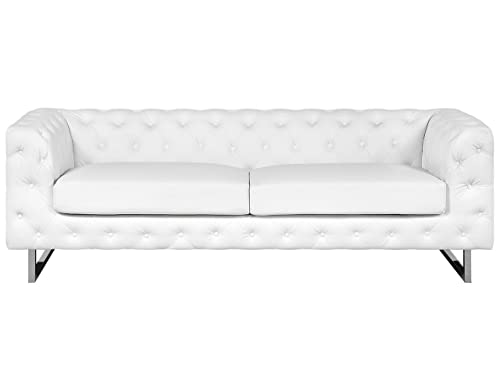Miliboo Canapé Design 2 Places en Cuir Blanc et Acier chromé...
