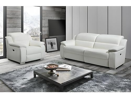Canapé 3 places et fauteuil relax électrique en cuir blanc -...