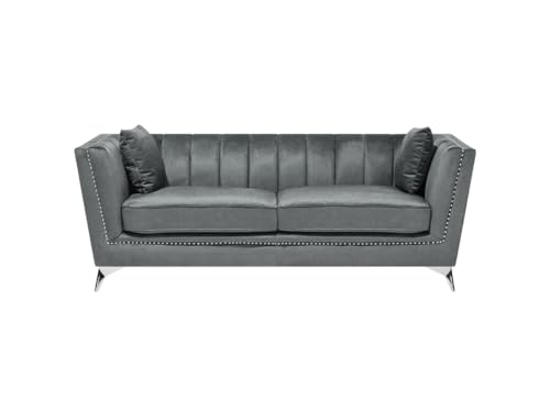 Canapé 3 Places Fixe Revêtement en Velours Gris et Rembourra...