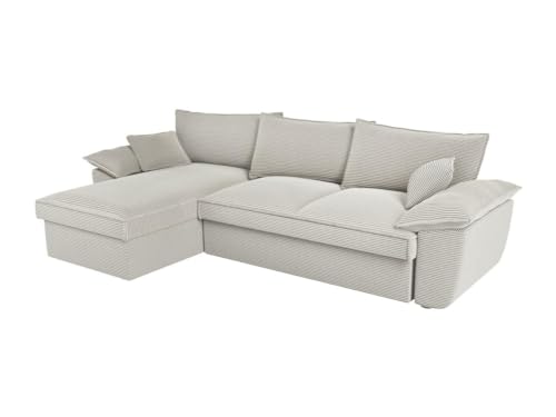 Canapé d''angle gauche convertible en velours côtelé gris cl...