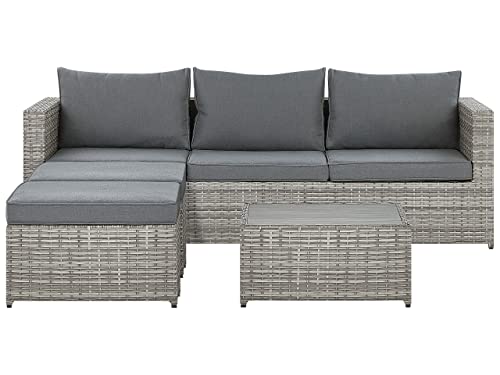 Salon de Jardin Canapé 3 Places 2 Poufs Ottomans et Table Ba...
