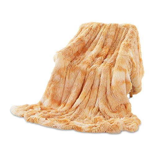Mandioo Lot de 2 Housses de Coussin en Fausse Fourrure Jaune...
