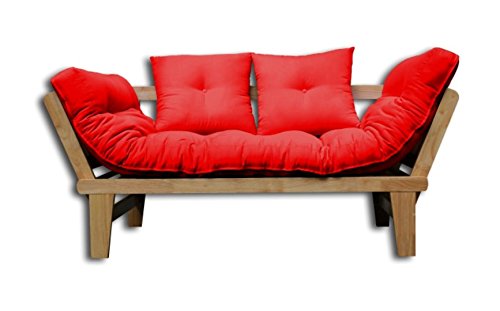 Canapé-lit Sésamo, Naturel, Futon Rouge, 200x82x32 cm