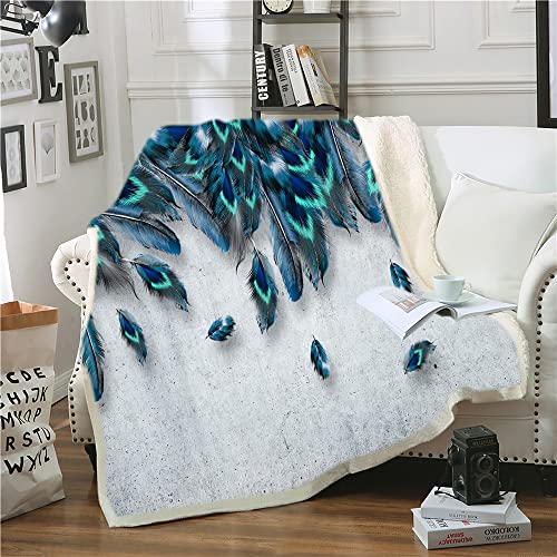 ZZXHG Couverture Polaire 240 x 260 Plume de Paon Bleu, Moell...