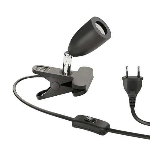 ledscom.de Lampe à pince LIK, interrupteur, noir mat, 1x E27...
