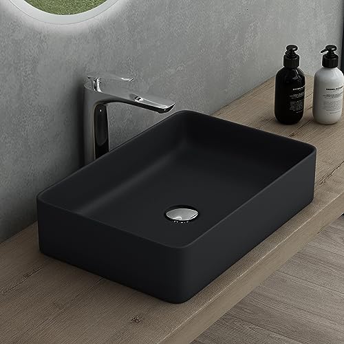 Vasque à poser design BR105D, en noir mat, matériau : cérami...
