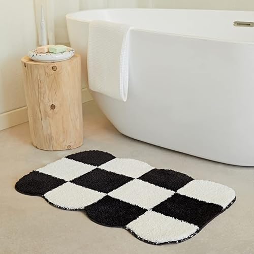 L Tapis de bain à carreaux noir et blanc, terre de diatomées...