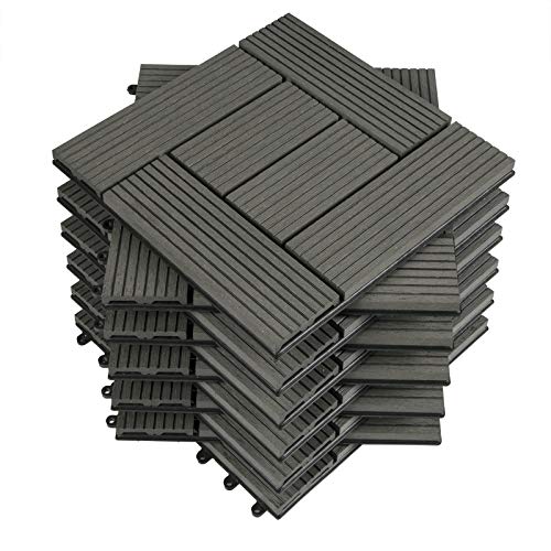 Woltu 30x30cm Carrelage Sol Dalle WPC Fixation Plug-in Gris