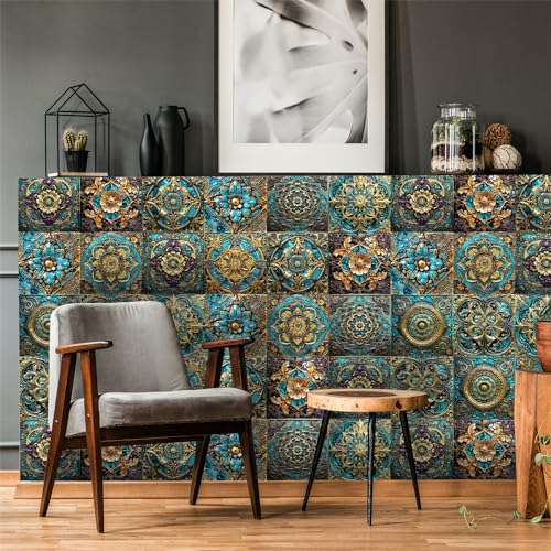 Carrelage Adhesif Mural Cuisine 20X20Cm Mandala Vintage Stic...