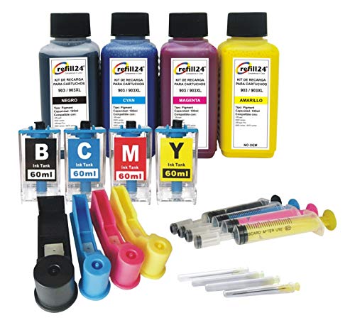 Kit Recharge 24 pour Cartouches HP 903 Noir et Couleur