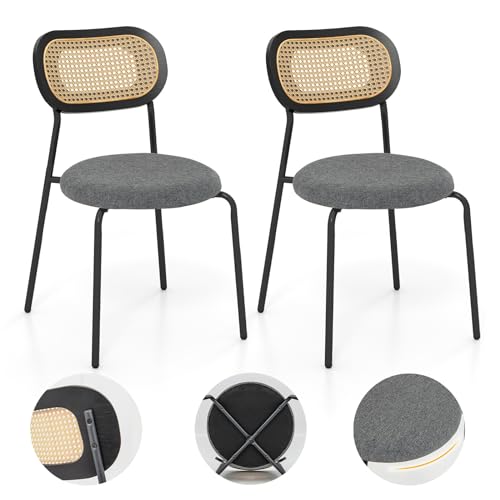 Lot de 2 Chaises Salle à Manger en Rotin, Siège Ronde Rembou...
