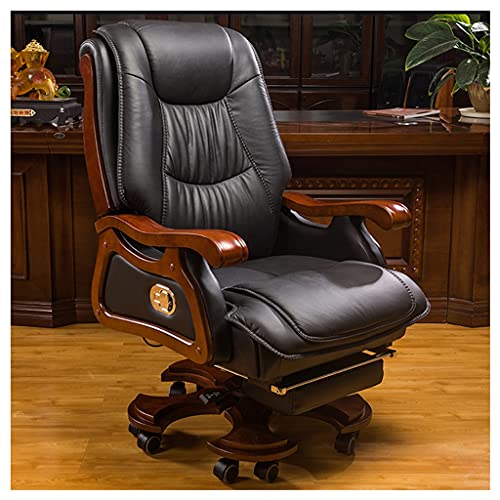 Ren Chaise d'ordinateur en cuir véritable, bois massif, pivo...
