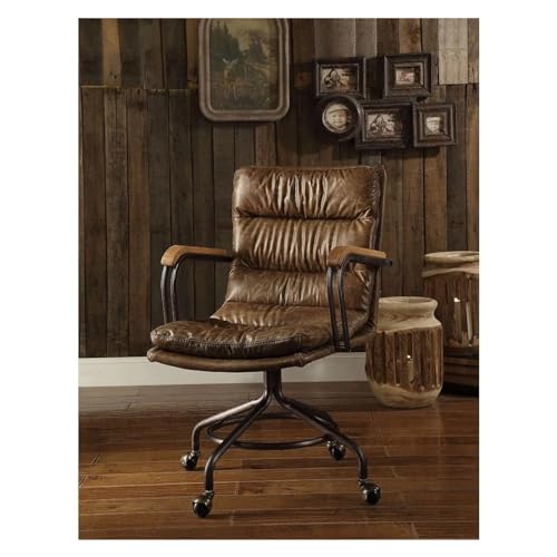 Luo Yi - Chaise pivotante bureau en cuir Whisky V-intage