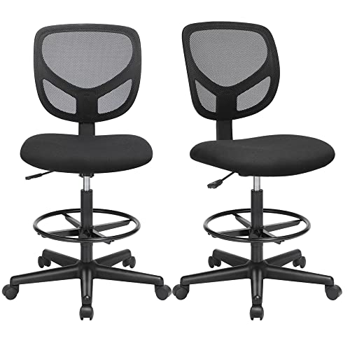 GYMAX Ergonomic Office Chairs 2 Chaises de Bureau Noir PU Mé...
