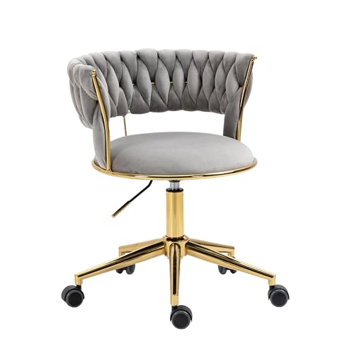 Chaise de bureau pivotante velours rose, fauteuil confortabl...