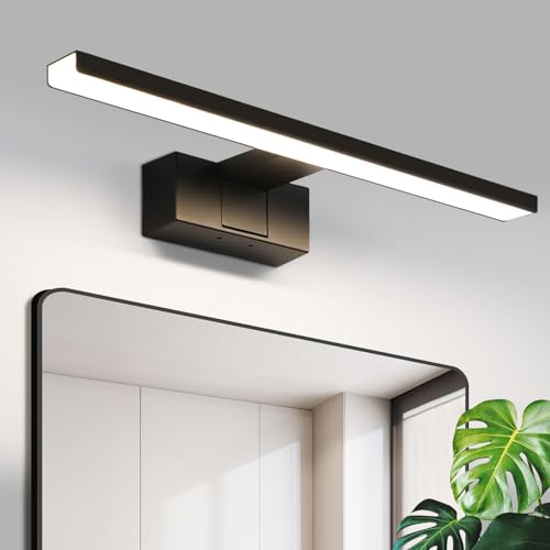 Lampe de miroir LED Homefire 40 cm, noire étanche IP44, blan...