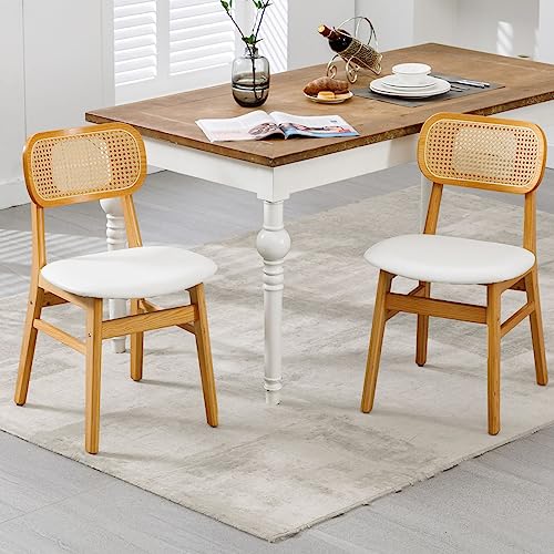Wahson Rotin Chaise de Salle 4, Chaise Bois Rétro Coussin Be...