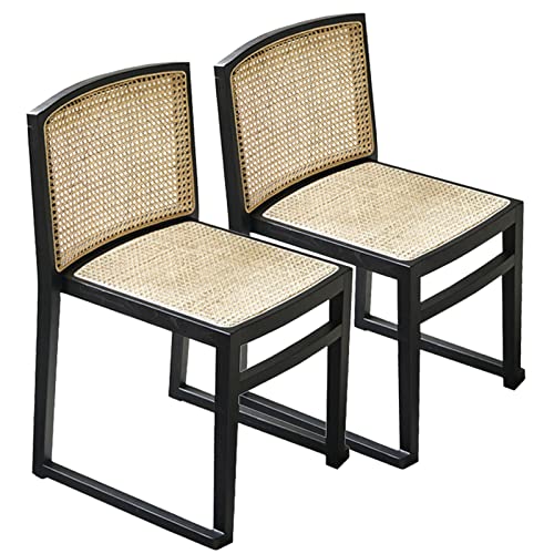 Lot de 2 Chaises Salle à Manger en Rotin, Siège Ronde Rembou...