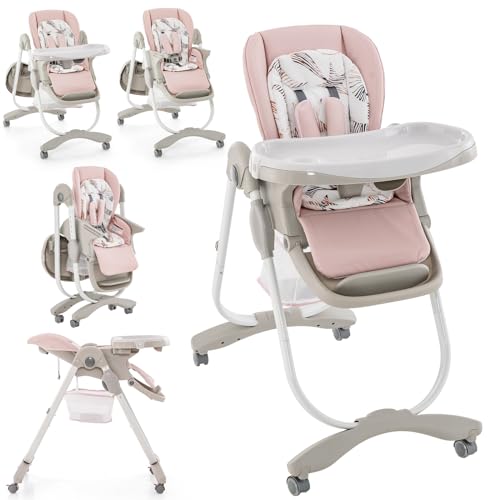 Haute chaise haute à roulettes bébé ajustable hauteur, doubl...