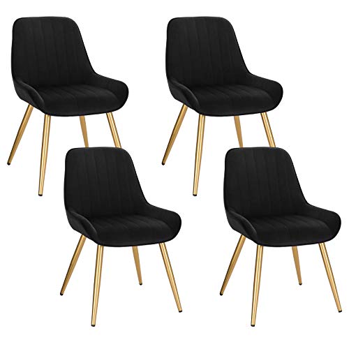 Lestarain Chaises Salle Cuisine Salon Velours Noir Lot 4