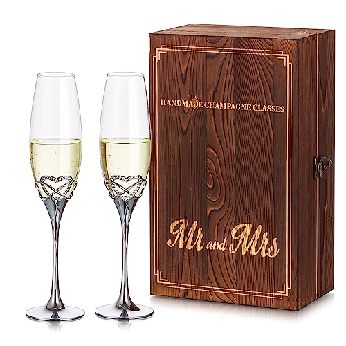 Nuplet Champagne Flûtes Cadeau Mariage Set Argenté Cristal