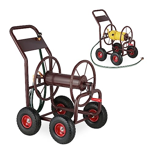Relaxdays Dévoidoir Tuyau Roues Chariot Marron