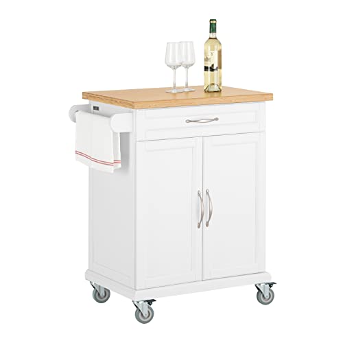 KOMFOTTEU Chariot de Cuisine Bois Masif 1Tiroir 1Armoire 4ro...