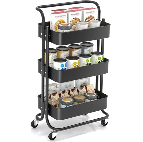 OHMG Chariot de Service Cuisine à Roulettes 3 Plateaux
