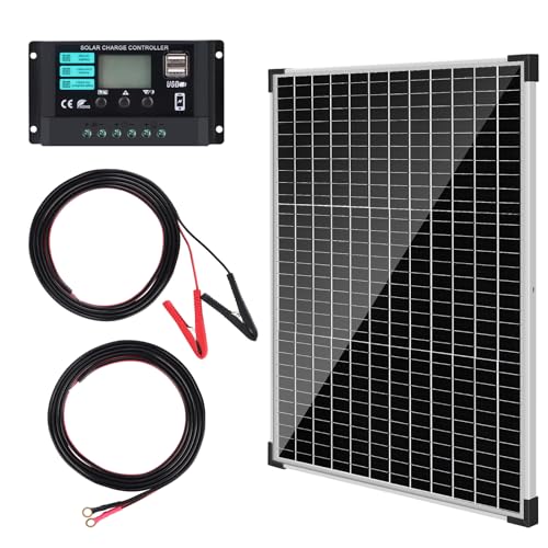VGOOD Panneau Solaire 50W 12V Monocristallin, Régulateur de...