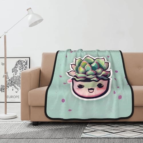 Vacsax Smiling Succulents Couverture double face en flanelle...